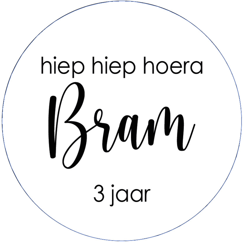 We passen de naam en leeftijd aan en de rest van de sticker blijft gelijk aan het voorbeeld.