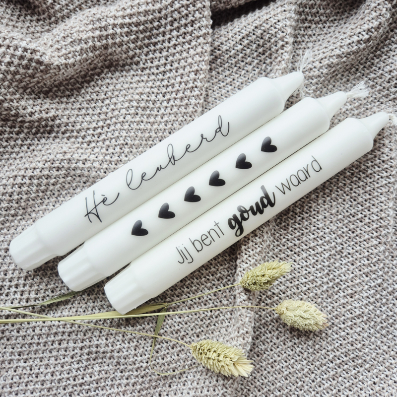 OverzichtNieuw zijn deze te gekke kaarsen met tekst. Hoe leuk om dit als cadeau weg te geven, mega uniek, je ziet het namelijk bijna nergens.