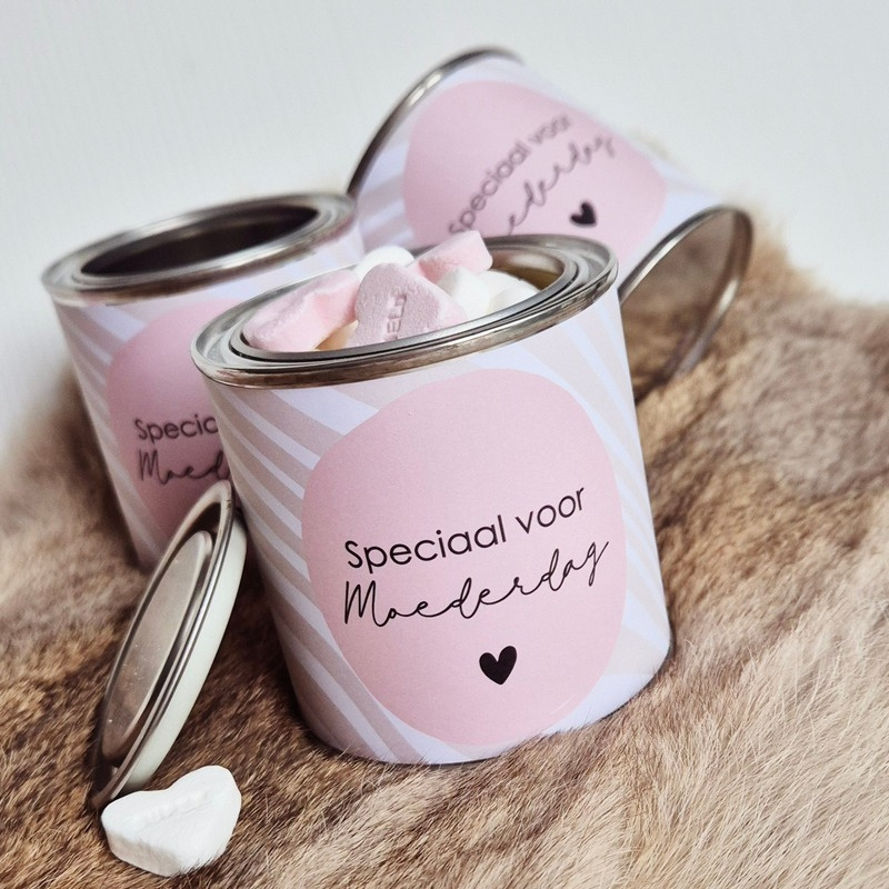 Blikje met wikkel | Speciaal voor MoederdagZOEK JIJ EEN ORIGINELE MANIER OM IETS LEKKERS OF KLEIN LEUKS TE GEVEN!?Geef dan dit blikje en vul het met een klein cadeautje, hartjes of anders lekkers.